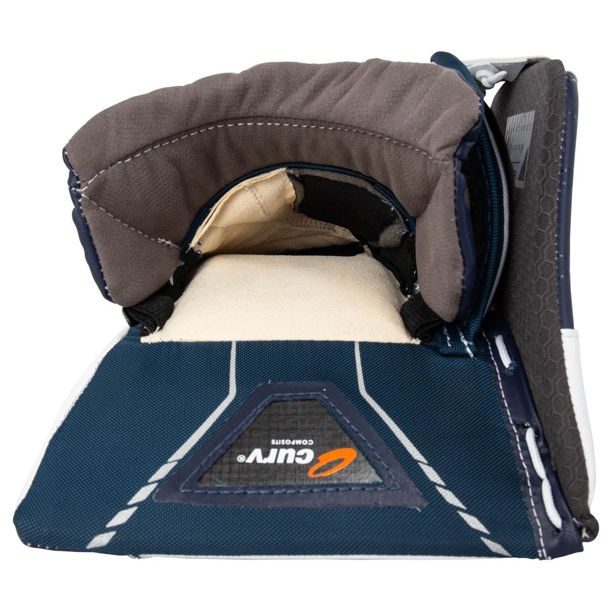Moving on to the board of the 3X blocker, Bauer has added CURV Composite over top of an HD Foam board which helps move pucks to the corner with ease. Also, this CURV reinforcement helps give the goalie more protection on the blocker board.